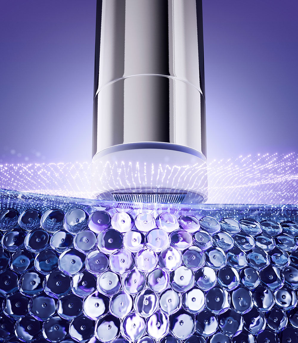 Dankzij de exclusieve nano-tip technologie, gemaakt van 484 ultra-precieze tips, kan de RÉNERGIE NANO RESURFACER | 400 BOOSTER de anti-aging werking verdubbelen van het RÉNERGIE H.C.F. TRIPLE SERUM op voorhoofdsrimpels, neus-lipplooien, kraaienpootjes en pigmentvlekken.***